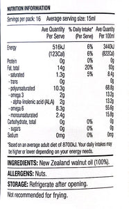 Walnut oil is packed with healthy Omega-3 fatty acids, and has a fresh walnut flavour. Try dipping fresh crusty bread in or drizzling over fresh pasta or sauteed green vegetables. It's a taste sensation!